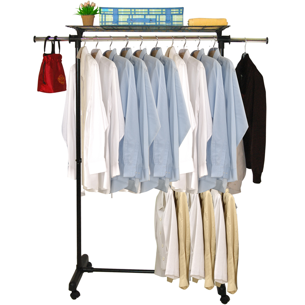 - Adjustable 2-rod Garment Rack which can hang up to 130 clothes.